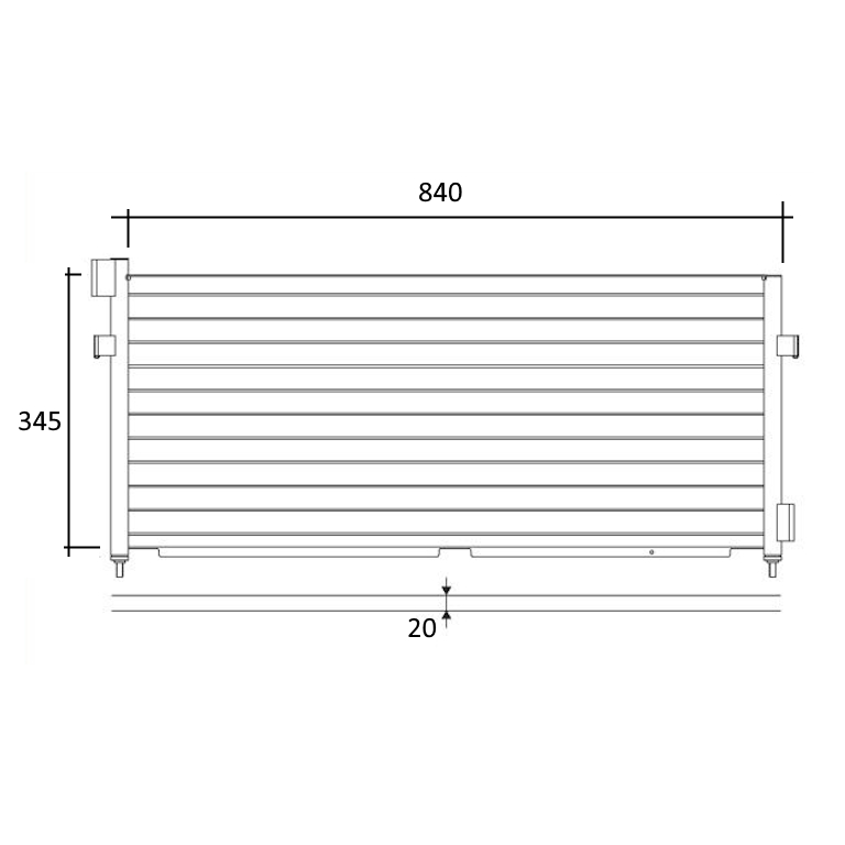 Massa Radiante (H-L-Sp): 345 x 840 x 20 mm